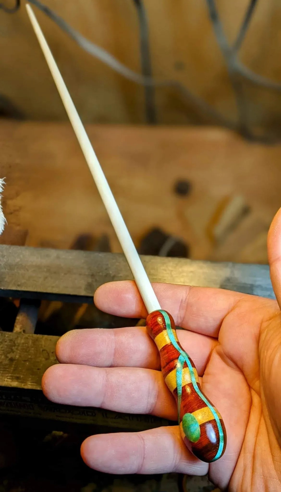 As a craftsman, he is primarily known as a maker of fine conducting batons which he has provided for choral and orchestral conductors all over the world. He has even been known to make a magic wand or two! His batons have been seen everywhere from highschool classrooms to the Metropolitan Opera and everywhere in between.